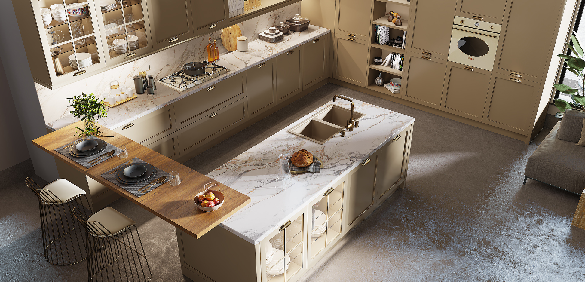 Lüksü zarafetle bir araya getiren Indigo, mavinin huzur veren tonları ile ilk görüşte sizi kendisine çekecek. Eskitme gümüş ve eskitme bronz kulp seçenekleri ile vintage görünüme sahip Indigo, tac ve ışık bantları sayesinde mutfağınızda zamansız bir atmosfer oluşturuyor. Eşsiz tasarımı ile Indigo, bir mutfaktan beklediklerinizin ötesine geçiyor, keyifli bir hayatın başlangıç noktasına dönüşüyor.